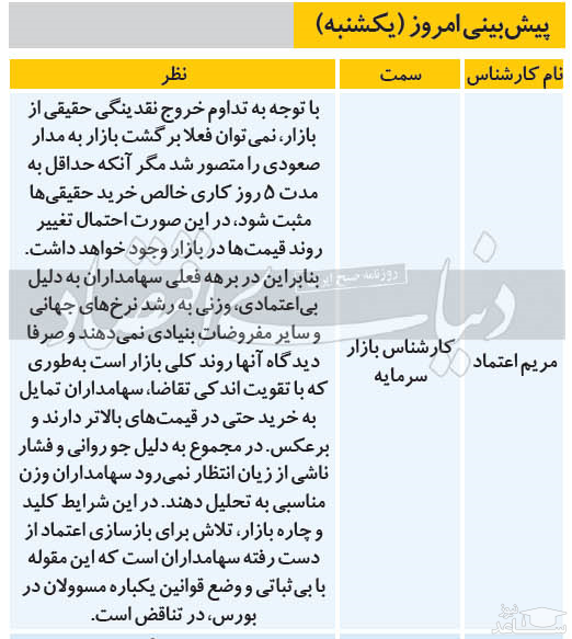 همچنین می توانید پیش بینی بورس امروز را در جدول دنیای اقتصاد بخوانید.