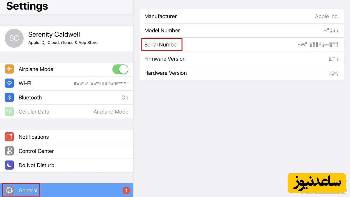 از آنجایی که ممکن است برچسب سریال روی جعبه نیز عوض شده باشد، مطمئن ترین راه این است که سریال را از خود گوشی بردارید. با طی کردن مسیر زیر به شماره سریال دست پیدا می کنید: بعد از روشن نمودن دستگاه، به قسمت تنظیمات (Setting) رفته و در قسمت (General)، گزینه (About) را انتخاب کنید تا شماره سریال دستگاه خود را مشاهده کنید. البته روی پنل پشتی نیز معمولاً این کد هک شده است.