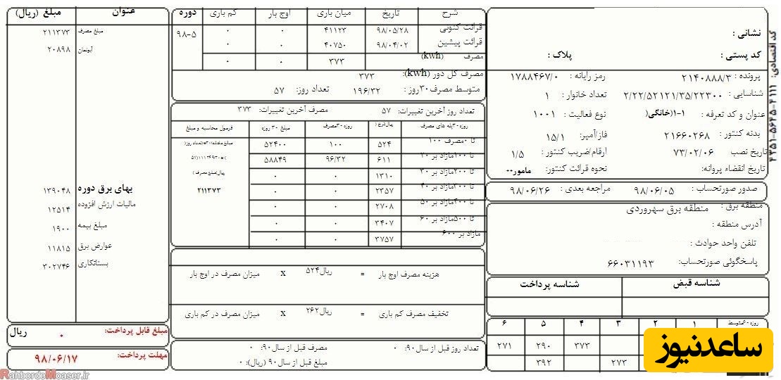 پس از وارد کردن شناسه قبض و کد امنیتی گزینه نمایش را بزنید تا مانند تصویر زیر قبض برق شما نمایش داده شود. در این مرحله شما امکان چاپ، ذخیره و پرداخت قبض را دارید.