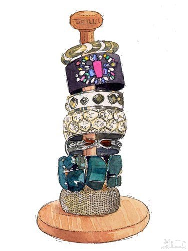 برای نگهداری از زیورآلات، دستبند، النگو و دکمه های سردست لازم نیست از جعبه های جواهرات استفاده کنید. به راحتی می توانید با خریدن یک میله چوبی عمودی همچون جای دستمال حوله ای آشپزخانه، آنها را داخل این میله قرار دهید تا دسترسی راحت تری نیز داشته باشند.