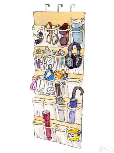 در بازار، قفسه های پارچه ای چند طبقه وجود دارد که می توان از پشت در کمد یا اتاق آویزان کرد. این قفسه های پارچه ای، برای قرار دادن وسایلی همچون، باتری، کلید، چتر، خودکار، عینک و ... جای زیاد و مجزایی دارند.