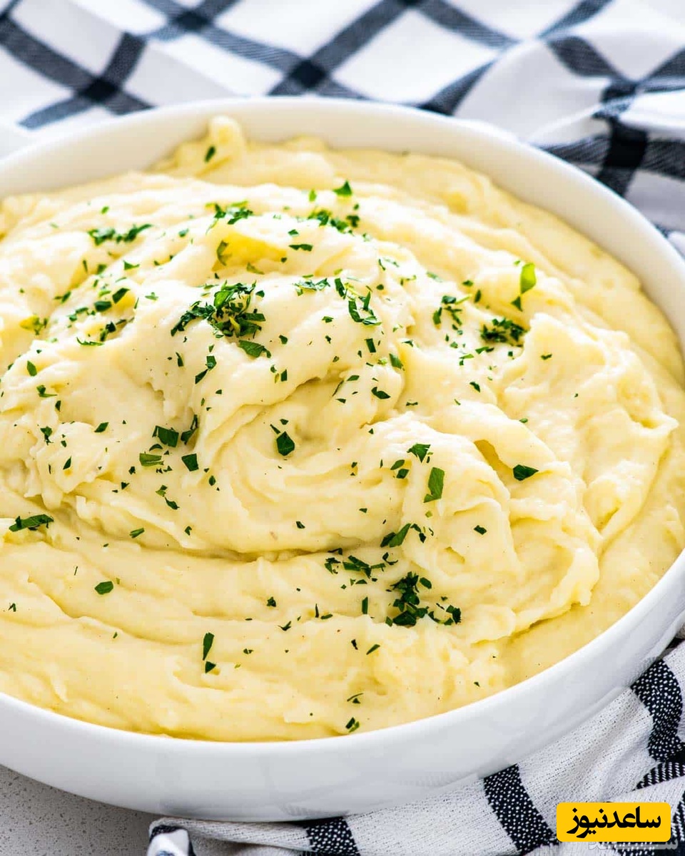 در ادامه باید ادویه ها را به همراه سبزی دلخواه اضافه کنید و مجدد مواد را بکوبید تا در نهایت یک پوره سیب زمینی کرمی شکل که بافت بسیار نرمی دارد بدست بیاید. پوره سیب زمینی رژیمی ما حاضر شده است و می توانید آن را سرو کنید. نوش جان