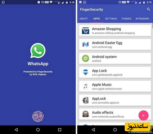 برنامه قفل پیشرفته اندروید با اثر انگشت FingerSecurity: قطعا FingerSecurity یکی از بهترین ها در لیست امروز است که می توان از گزینه های امنیتی آن برای دیده نشدن برنامه ها و اطلاعات آنها استفاده کرد. سایر ویژگی های این اپلیکیشن می توان به تعیین زمان برای قفل مجدد برنامه، جلوگیری از حذف برنامه ها و استفاده از قفل اثر انگشت اشاره کرد. نسخه رایگان این اپلیکیشن دارای مدت زمان محدود است و در نسخه پولی آن می توانید پس زمینه صفحه قفل شده را تغییر دهید، موقعیت های مکانی ایمن را اضافه کنید و از سایر ویژگی های این اپلیکیشن استفاده کنید.