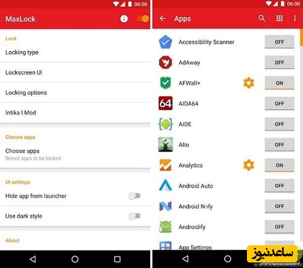 برنامه پسورد گذاری روی گالری ، اس ام اس ، تماس و برنامه های اندروید MaxLock: MaxLock برنامه ای جذاب برای گوشی های روت شده اندروید است که براساس فریم ورک Xposed کار میکند و لازم است که این فریم ورک روی دستگاه شما نصب باشد. این برنامه رایگان روش های مختلف قفل گذاری دارد. ویژگی های دیگر MaxLock شامل ذخیره فایلی از تلاش ها برای باز کردن قفل، بازیابی و یا بکاپ گیری از برنامه های قفل شده است.