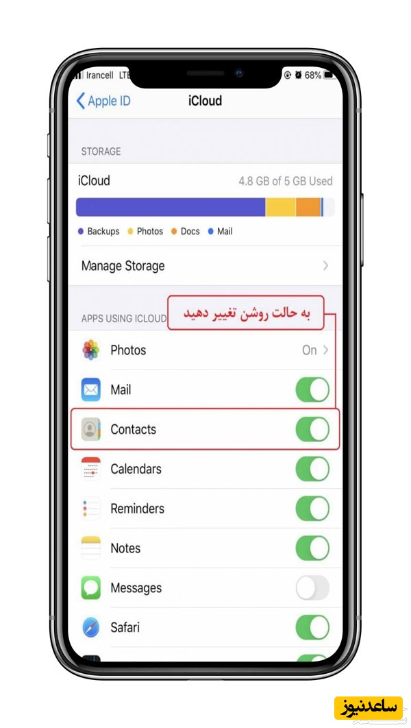 پس از پشتیبان گیری از مخاطبین در icloud باید مراحل زیر را طی کنید: