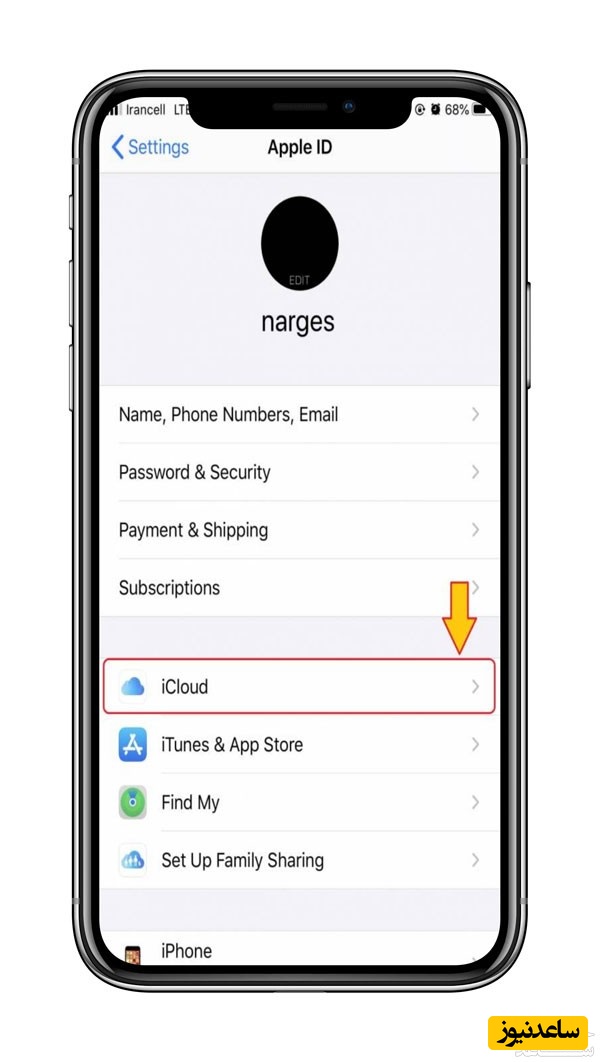 پس از لمس نام کاربری خود گزینه icloud را انتخاب نمایید.