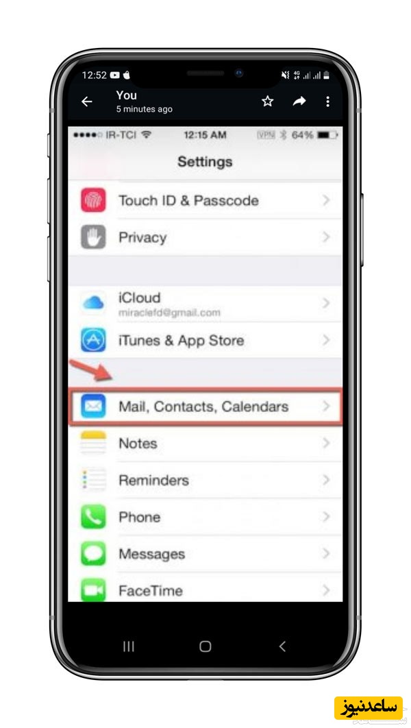 ورود به حساب کاربری خود در قسمت settings گوشی آیفون