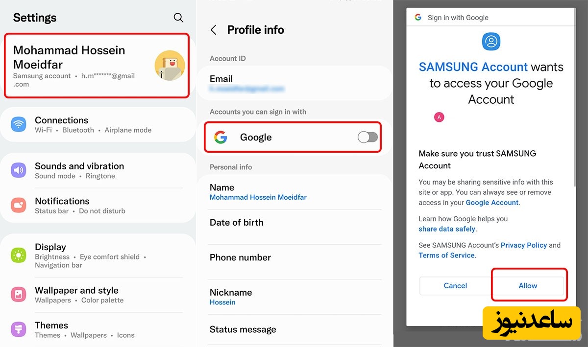 ساختن اکانت سامسونگ با گوگل