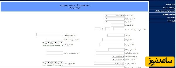 2. پس از ورود به سامانه ثبت درخواست آنلاین بیمه بیکاری اطلاعات خواسته شده را وارد کنید و به مرحله بعد بروید.