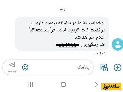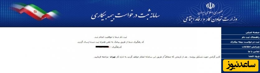 3. پس از ورود کامل اطلاعات جهت ثبت درخواست آنلاین بیمه بیکاری در مرحله بعد یک کد رهگیری دریافت می کنید تا جهت پیگیری از آن استفاده کنید.