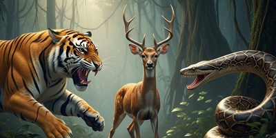 (ویدئو) مستند حیات وحش حیوانات/ آهویی که از چنگال ببر به آغوش مار پناه برد...