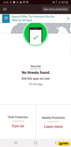 Antivirus Avast: این برنامه امنیتی تلفن همراه دارای سپر داده برای محافظت از عکس ها ، اطلاعات تماس و سایر فایل های حساس توسط برنامه ها و هکرهای غیر مجاز است. آنتی ویروس Avast، بدافزار را قبل از حمله به دستگاه شما متوقف کرده و طرح های فیشینگ را مسدود می کند. استفاده از اکثر ابزارهایی که در این آنتی ویروس نمایش داده می شوند ، ساده است و استفاده از آن راحت می باشد. در حین اسکن ویروسی و امنیتی، من کندی زیادی در دستگاه هایم تجربه نکردم. Avast Mobile Security یکی از محبوب ترین برنامه های آنتی ویروس در هر پلتفرمی است. بیش از 100 میلیون بارگیری و تعداد زیادی ویژگی دارد. Avast Antivirus دارای محافظت از وب است که به شناسایی وب سایت های خطرناک که در آنها فایل ها و لینک های مخرب وجود دارد ، کمک می کند. Avast دارای تبلیغات است ، زیرا یک برنامه رایگان است و برای دسترسی به هر قسمت از تلفن همراه یا تبلت شما نیاز به مجوزهای زیادی دارید. اما من همچنین تحت تأثیر قرار گرفتم که چگونه فایلهای بدافزار ، فایلهای ناخواسته و حافظه پنهان را برای پاکسازی اسکن می کند.