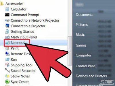 از منوی Start وارد Run شده و عبارت notepad را وارد نموده و Enter بزنید تا ویرایشگر Notepad ویندوز باز شود.