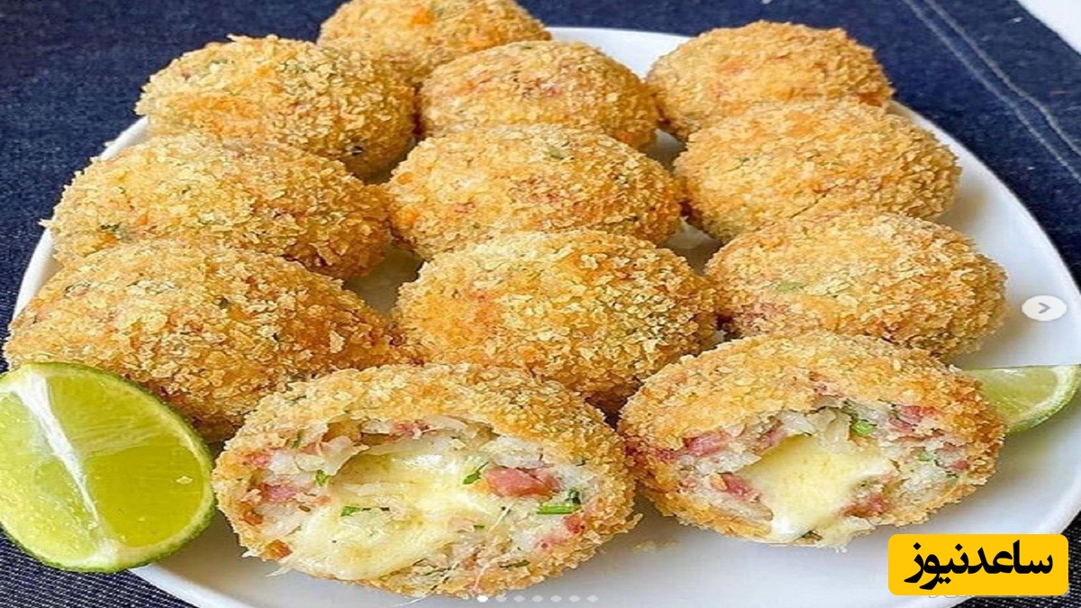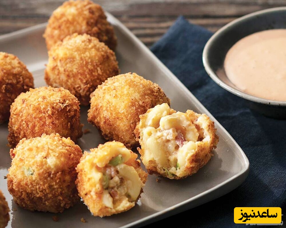 اگر دوست دارید توپک های پنیری با سایز کوچک تر درست کنید، تکه های پنیر وسط آن ها را کوچک تر در نظر بگیرید.