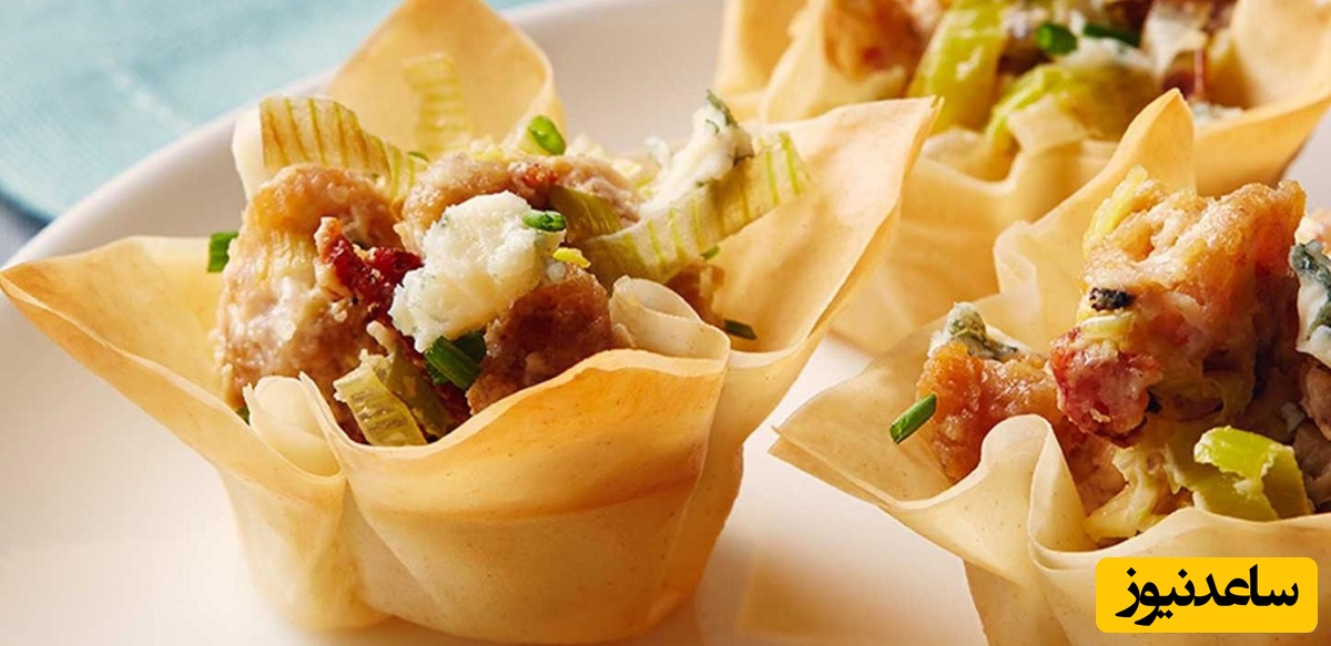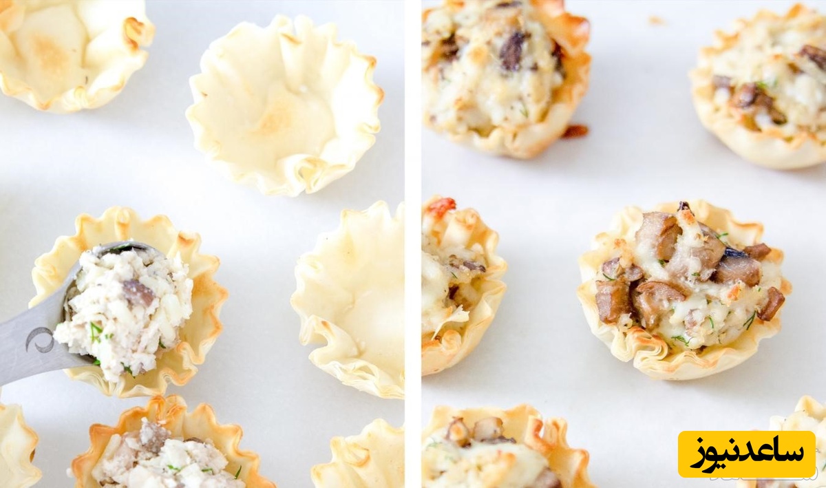 ورقههای فیلو را پشت قالب مافین به قطر 5 سانتیمتر بگذارید.