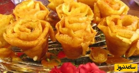 خاگینه برش خورده را از یک طرف لوله کنید تا به شکل گل در آید .
