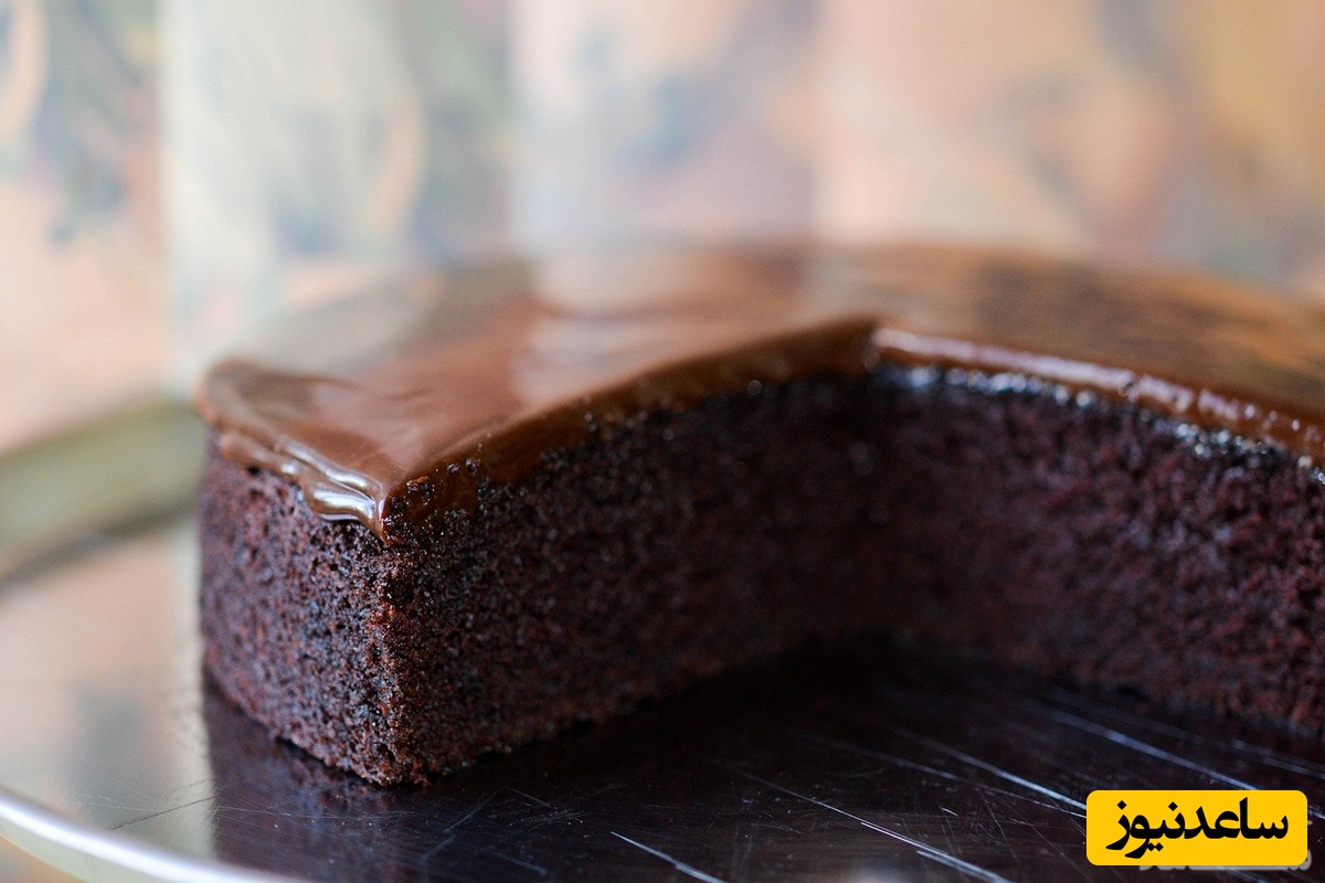 پس از خارج کردن در همان زمان که کیک کاملاً داغ هست سس شکلاتی که قبلاًجدا کردین را به کیک اضافه کنید.