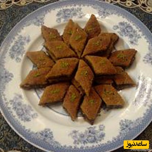 مرحله ششم: وقتی کماچ طلایی شد، آن را از فر بیرون بیاورید و بعد از آنکه از حرارت افتاد، رویش را با یک لایه نازک پودر قند و مغز پسته آسیاب شده بپوشانید.