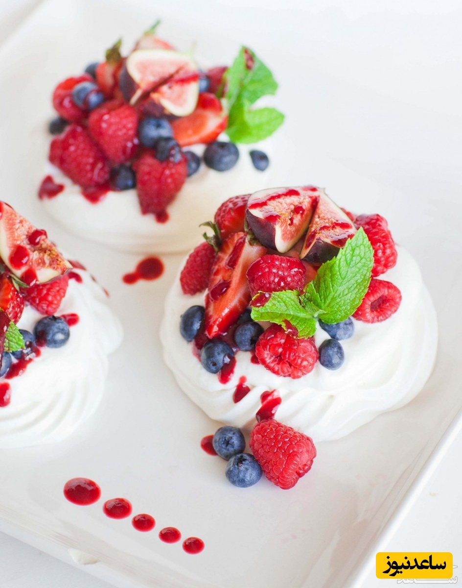 مرنگ با خامه و میوه به مدت 1 ساعت در یخچال قابل نگهداری است.