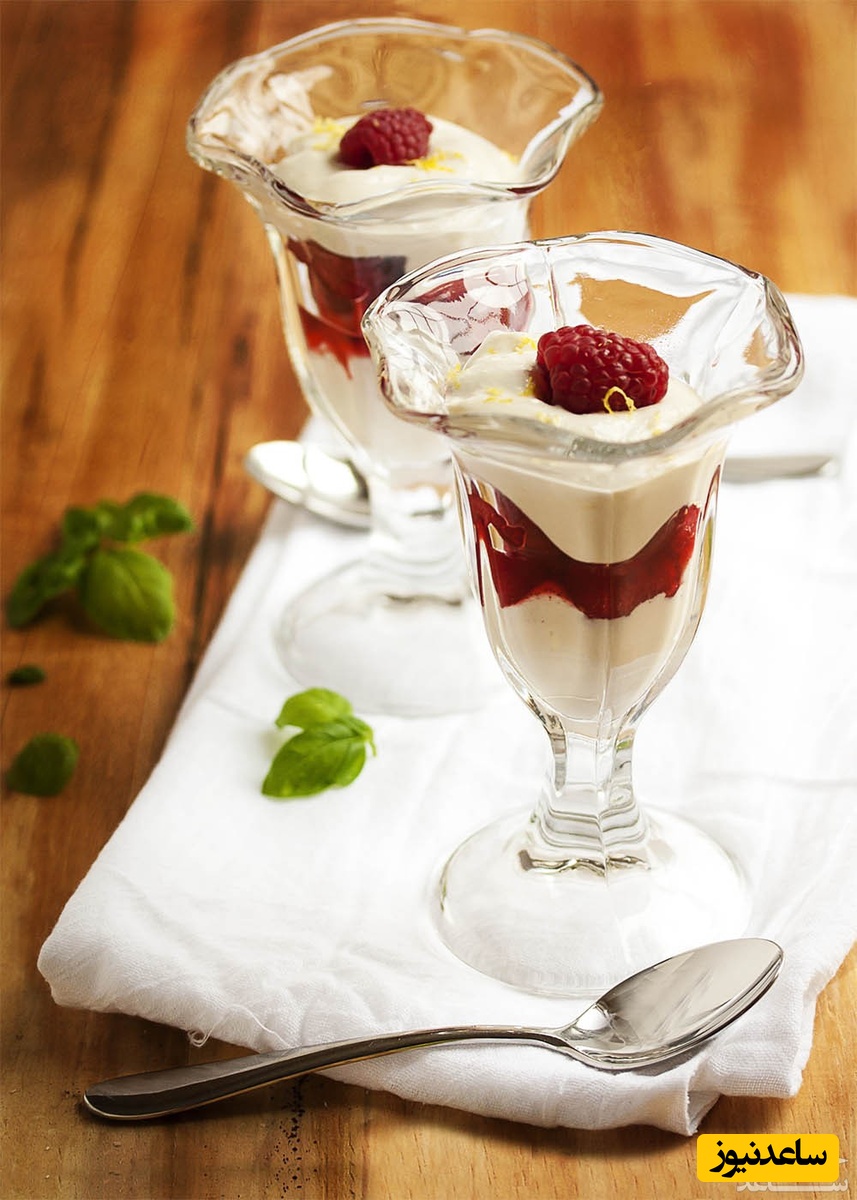 موقع سرو، روی آن را با خامه فرم گرفته و آلبالوی تازه تزیین نمایید.