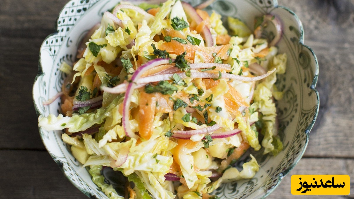 کلم، کرفس، هویج، جعفری خرد شده و آناناس را با سسمخلوط کرده وسرو کنید.