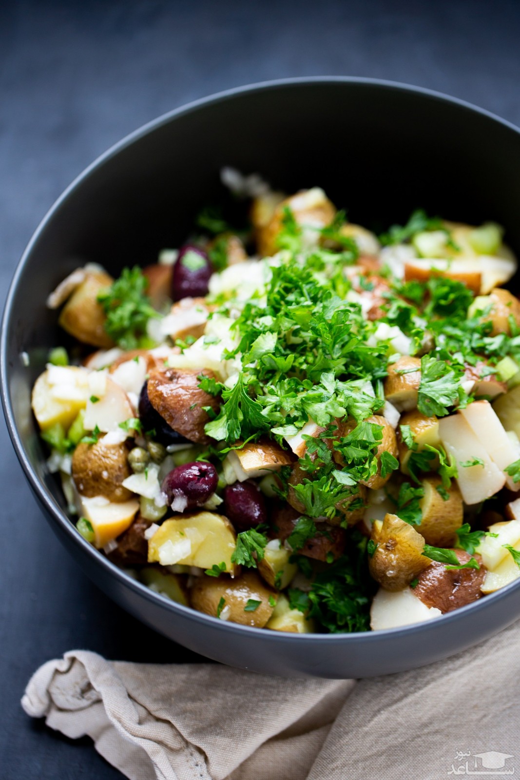 - سالاد را در ظرف مناسبی ریخته، سرو نمایید.