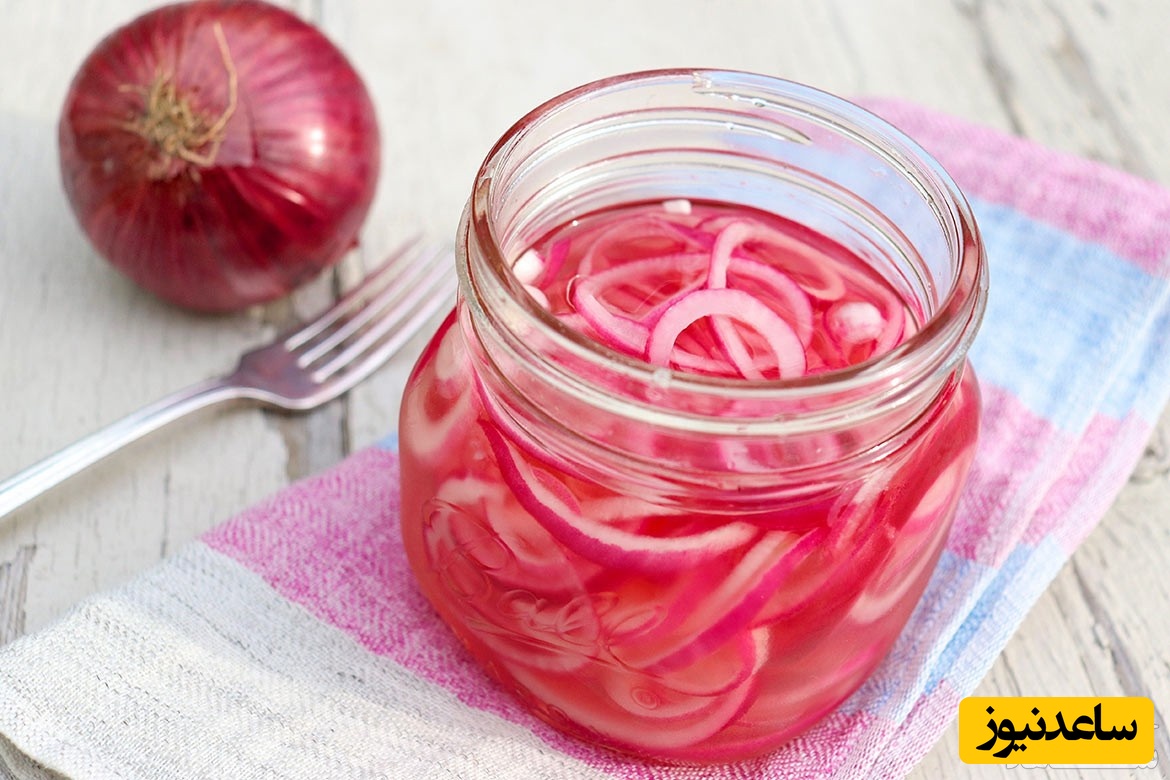 پیاز ترشی را با پیاز قرمز ریز نیز می توانید آماده کنید .در صورت دلخواه ، می توانید 3-2 عدد فلفل سبز یا قرمز تند داخل ترشی بریزید.