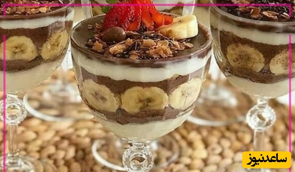 مرحله چهارم: حالا با لایه لایه مواد، ظرف دسر را پر کنید و در یخچال استراحت دهید.