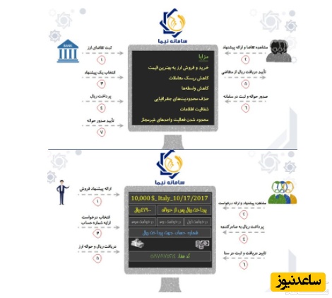 در واقع سامانه نیما به منزله پل ارتباطی میان سامانه جامع تجارت (محل ثبت سفارشات بازرگانان) و سامانه سنا (محل مشاهده درخواست های خرید و فروش ارز توسط صرافان) عمل می کند. صرافی ها با استفاده از خدمات رایگان نیما می توانند مستقیما با متقاضیان ارتباط برقرار نموده و به ارائه پیشنهاد و جذب تقاضا بپردازند.