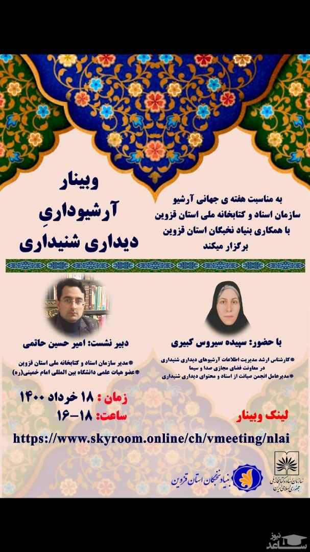 سازمان اسناد و کتابخانه ملی استان قزوین وبینار آرشیوداری دیداری و شنیداری را برگزار می کند.