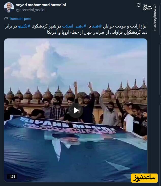 ابراز ارادت و مودت جوانان هند به رهبر انقلاب در شهر گردشگری لکهنو در برابر دید گردشگران فراوانی از سراسر جهان از جمله اروپا و آمریکا