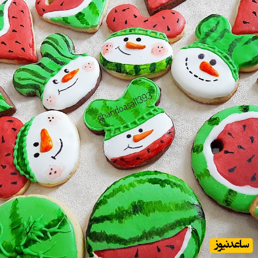 به گزارش سرویس آشپزی ساعدنیوز، یکی از انواع کوکی ها می باشد که ابتکاری است و مختص شب یلدا می باشد و شما می توانید برای مهمانی و مجالس خود این کوکی را تهیه کنید و در این شب طولانی در کنار خانواده خود سرو کنید کوکی هندوانه ای بر پایه کره می باشد و شما باید سه خمیر داشته باشید و با کمک رنگ های ژله ای آن را قرمز و سبز کنید و یک قسمت را ساده نگه دارید و برش بزنید و بعد از پخت با کمک شکلات اشکی آن را مانند هندوانه تزئین کنید بافت این کوکی ترد است و زیاد نباید در فر بماند و یا خمیر را ورز دهید وگرنه کوکی خشک می شود. امروز طرز تهیه کوکی هندوانه ای را به شما آموزش خواهیم داد همراه ما باشید.