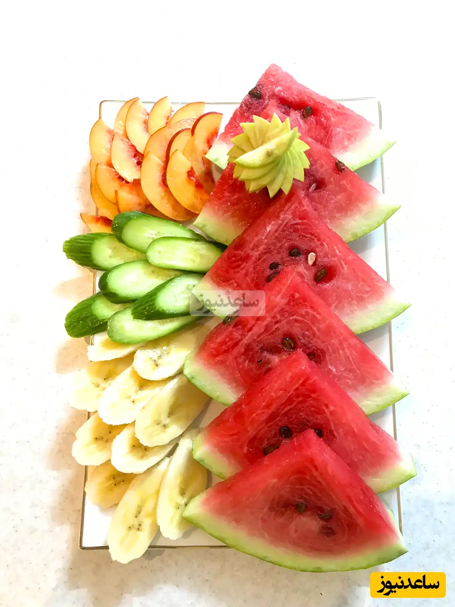 هر لایه از هندوانه را با میوههای خرد شده، پنیر خامهای و… تزیین کنید.