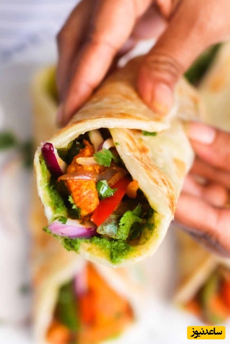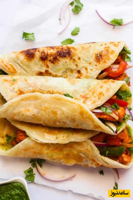 در فصل تابستان، می توانید مرغ ماریناده شده، پیاز و فلفل را روی کباب پز outdoor گریل کنید تا طعم دودی دلپذیری به آن اضافه شود. روی پاراتاهای پخته شده قرار دهید، چتنی گشنیز و نعناع بریزید، با پیاز قرمز ترد و گشنیز تازه تکمیل کنید. بپیچید و گرم میل نمایید.