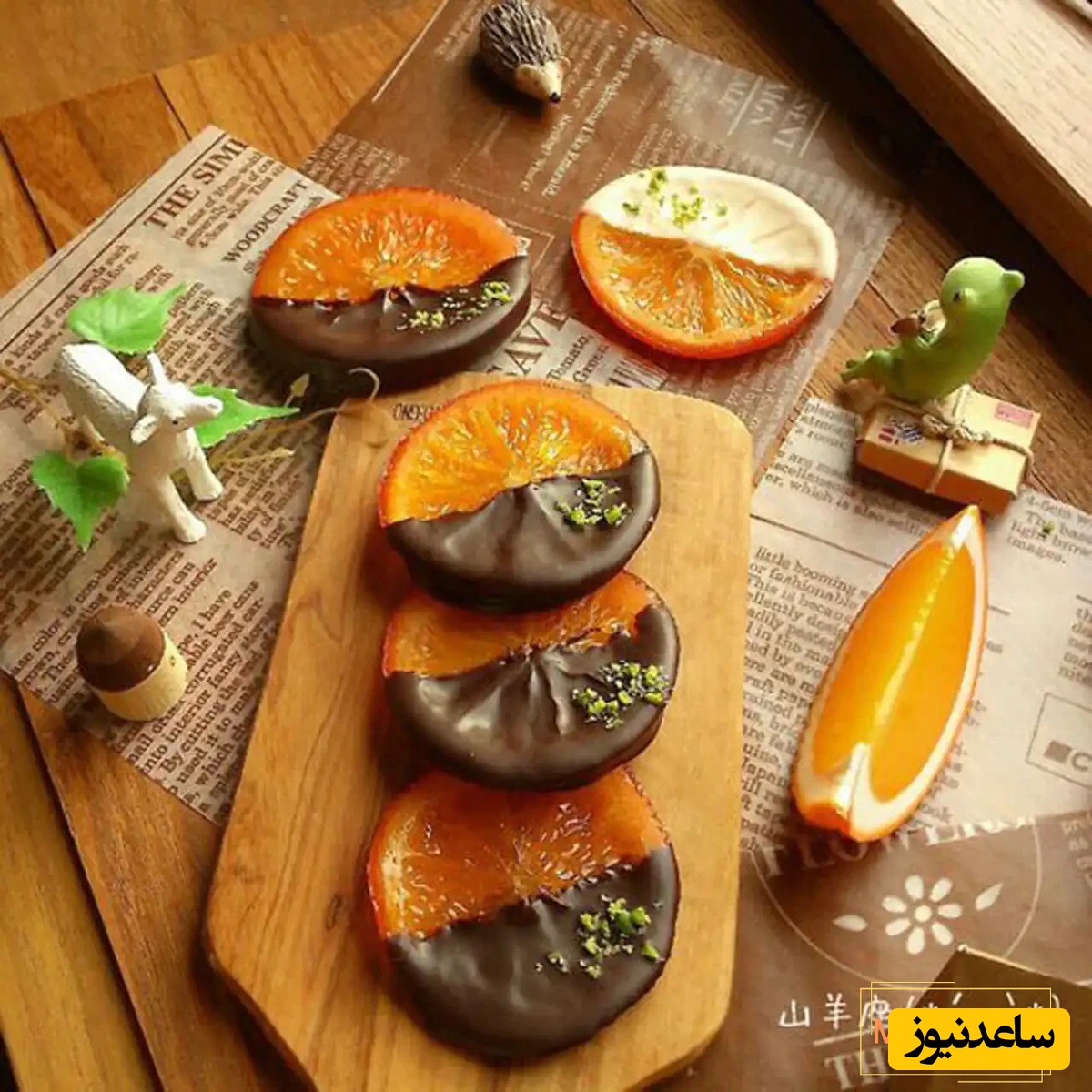 یکی از ایدههای جذاب برای دیزاین خوراکیهای شب یلدا، استفاده از پرتقالهای تزیینشده است. برای این کار، میتوانید پرتقالها را به صورت حلقههای نازک برش دهید. سپس این برشها را درون شربتی که با عسل یا زعفران شیرین و غلیظ شده است، بجوشانید تا به شکل شیشهای و نیمهشفاف تبدیل شوند. به این ترتیب، پرتقالهای شکری یا خشک شدهای به دست میآورید که ظاهری براق و جذاب دارند.
