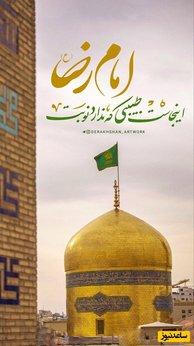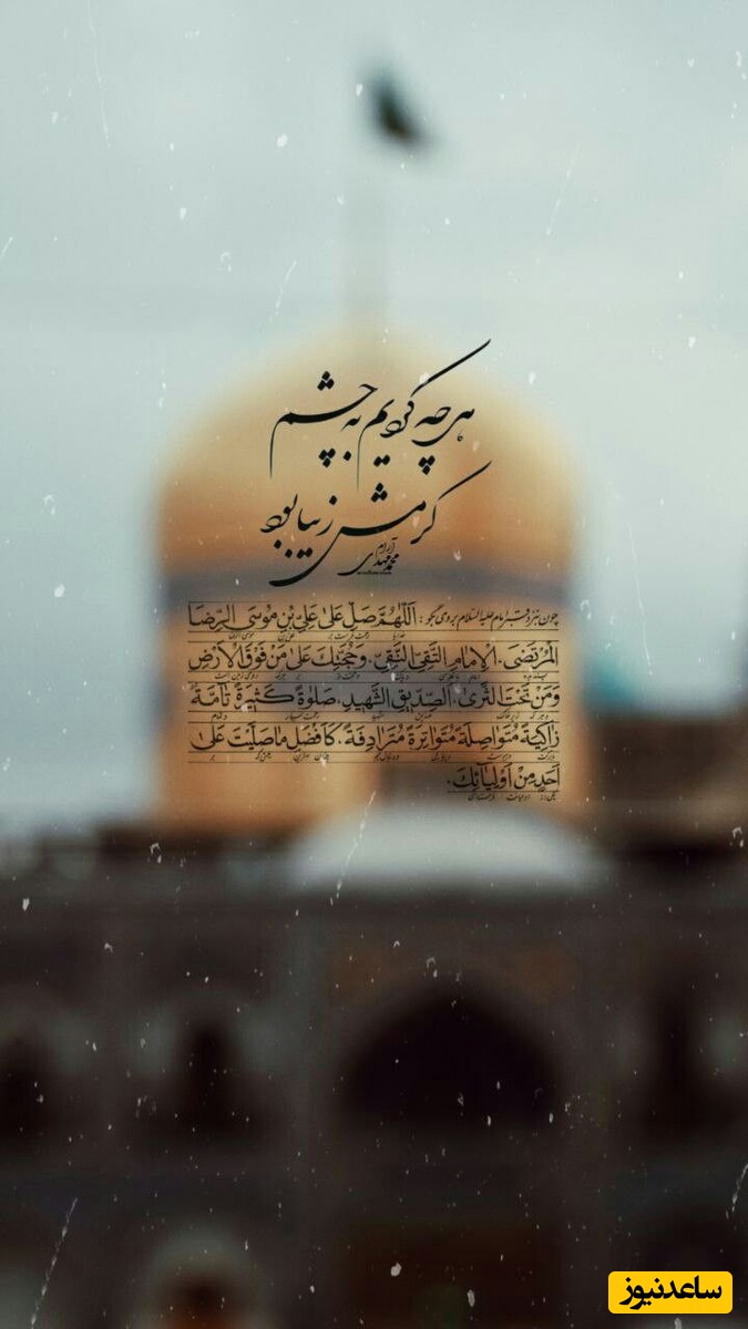سلام، ای باور آسمانی ام و ای شمع شب تار زندگی ام و ای روشنی بخش کاشانه ام. من همان کبوتر پر شکسته ای هستم که راهی را جز آستان تو نمیشناسم. ای من به فدای طلایی گنبد و تنهایی مهمان هایت شوم، میشود گوشه چشمی هم به من داشته باشی. منی که هر چه داشتم در صحن و سرایت با تو ساختم. مرا در موج مهربانی هایت غرق کن یا علی ابن موسی الرضا.