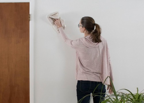 در ادامه، کمی شوینده ملایم را درون ظرفی از آب ولرم مایل به سرد بریزید و بخوبی مخلوط کنید.