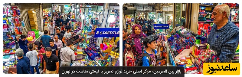 بازار بین الحرمین یکی از معروفترین بازارهای تهران است. این بازار به دلیل فروش انواع لوازم تحریر، خودکارهای روان نویس و محصولات مشابه، محبوبیت بسیاری بین مردم و بازدیدکنندگان دارد. قسمت بزرگی از بازار بین الحرمین به فروش لوازم تحریر و خودکارهای روان نویس اختصاص یافته است و میتوانید انواع قلمهای فانتزی، مدادها، نوشتافزارها و دیگر لوازم مدرسه را با قیمتهایی بسیار مناسبتر از دیگر مغازهها در این قسمت پیدا کنید.