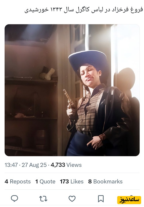 از زاویهای دیگر، این استایل را میتوان امتداد همان دگرگونی دانست که فروغ در زبان شعر فارسی پدید آورد. همانطور که در «تولدی دیگر» مرزهای سنتی را در هم شکست و به صدایی نو بدل شد، در ظاهر و سبک شخصیاش نیز همین میل به نوآوری و متفاوت بودن آشکار است. این تصویر نهفقط یک ژست هنری، بلکه نمادی از طغیان و عصیان علیه ساختارهای مسلط فرهنگی و اجتماعی ایران است؛ تصویری که امروز هم همچون شعرهایش، حامل پیام آزادی و رهایی باقی مانده است.