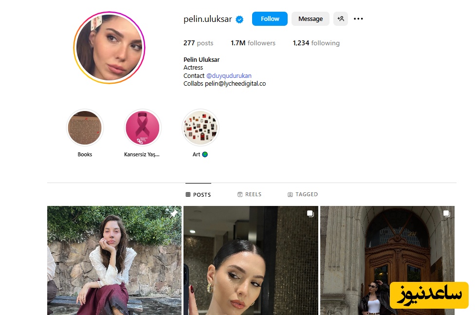 پلین الوکسار در اینستاگرام از طریق صفحه شخصی خود با نام کاربری pelin.uluksar در ارتباط است.