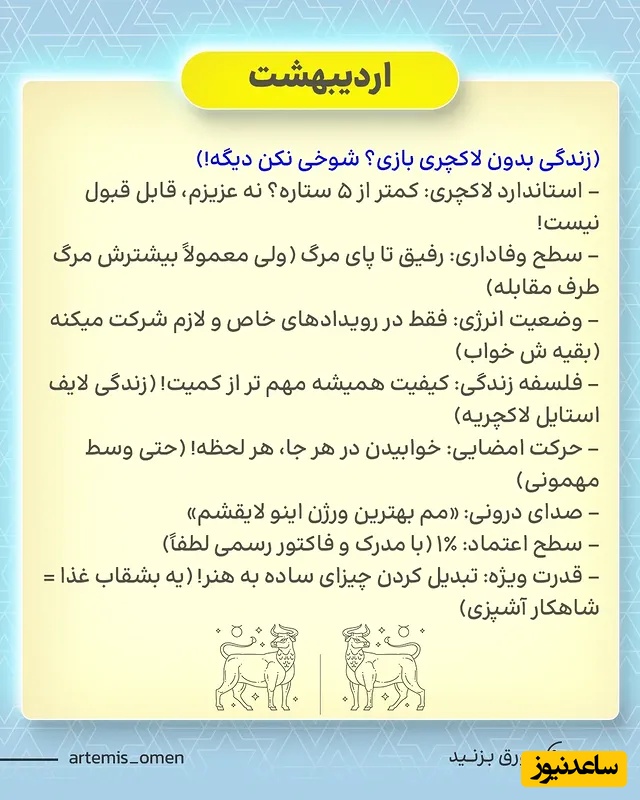 اما آیا واقعا این خصوصیات درست است و با اخلاق و شخصیت شما همخوانی دارد؟معمولا افراد هر ماه خصوصیات اخلاقی مشترکی دارند! این جمله سبب میشود تا افراد خودشان را با این طرز تفکر سرگرم کنند که احتمالا فلان خصوصیت اخلاقی مختص آنها است یا خیر، اما در کل شاید این حرفها و شنیدهها جدی باشد و یا صرفا جنبه طنز و سرگرمی داشته باشد. این مطلب را بر پایه سرگرمی گذاشته و قصد داریم تا درباره خصوصیات اخلاقی متولدین هرماه اطلاعاتی را در اختیار شما قرار دهیم، پس با ما همراه باشید.