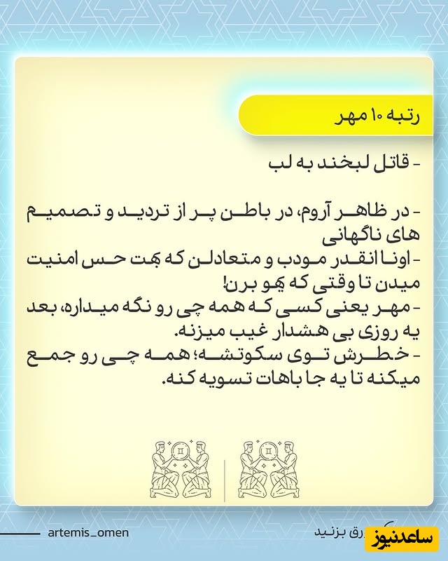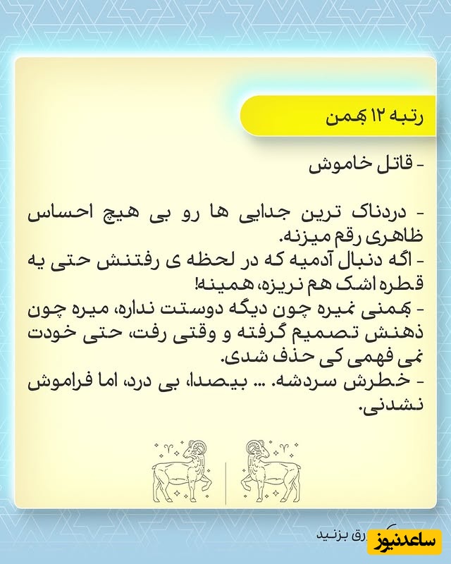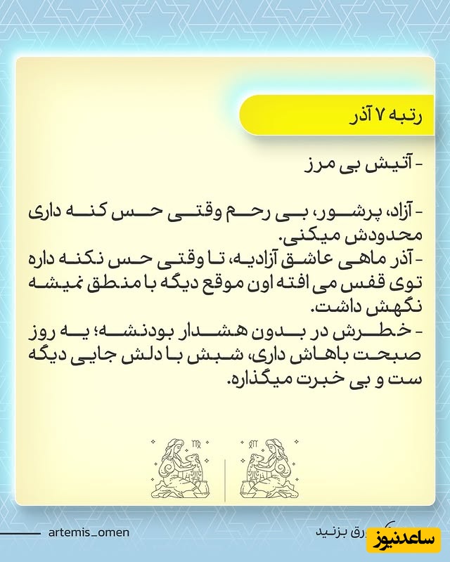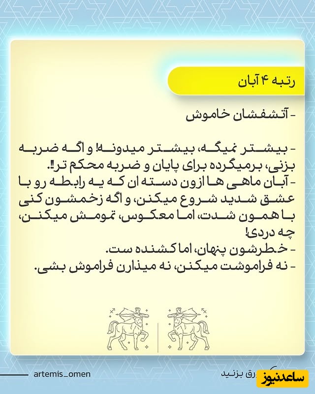 ساعدنیوز: همه افراد زودیاک کمی خطرناک هستند. اشتیاق افراد عنصر آتش می تواند ناپایدار باشد. احساسات افراد عنصر آب می تواند شدید باشد و رویاهای افراد عنصر زمین می تواند ناخوشایند باشد. هر شخصیت این توانایی را دارد که تهدیدآمیز باشد، زندگی ماجراجویانه ای داشته باشد و در صورت تحریک آنها وحشی شود. اما کدام نشانه ها خطرناک تر از بقیه هستند؟