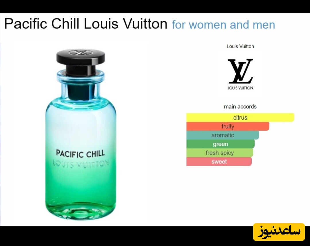 لویی ویتون پسفیک چیل (Louis Vuitton Pacific Chill): این عطر یونیسکس با ترکیبی از نتهای میوهای و ادویهای، حس تازگی و شادابی را منتقل میکند و برای استفاده در فصول گرم سال مناسب است.