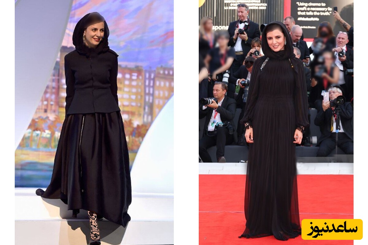 استایل های لیلا حاتمی و حواشی آن ها در مراسم کن 2014 تمامی ندارد. او که در شصت و هفتمین دوره جشنواره فیلم کن به عنوان داور اصلی انتخاب شده بود، توانسته در عین رعایت حجاب زیباترین لباس ها را پوشیده و مثل ستاره بدرخشد. عکس سمت چپ مربوط به همین مراسم است. استایل مونوکروم مشکی جزو استایل های مورد علاقه لیلا حاتمی محسوب می شود. او در این استایل از ست کت و دامن بهره برده است. دامن کلوش این ست می تواند به تنهایی زیبایی استایل او را تضمین کند. در این دامن از یک زیپ بلند به عنوان اکسسوری استفاده شده است. پارچه به کار رفته در دامن این ست پارچه ساتن آمریکایی بوده و با پارچه کت آن تفاوت دارد. برای طراحی و دوخت کت این ست از پارچه کرپ کنزو که جزو پارچه های مات طبقه بندی می شود، استفاده شده است.