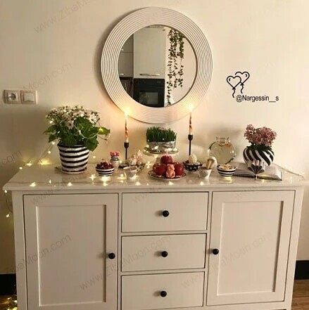 گذاشتن نمادهای سفر هفت سین روی کنسول ایده جذابیه چون معمولا کنسول در هر جای خونه که باشه، نگاه ها رو به خودش جلب میکنه. ضمن اینکه به راحتی میتونی کنار هفت سینت بایستی و عکس های یادگاری قشنگی با عزیزانت بگیری.