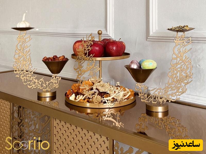 1- استفاده از ظروف فلزی نقره ای و طلایی حس زیبایی از اصالت و سنت رو به سفره هفت سین شما می بخشه و اون رو درخشان و چشمگیر میکنه.