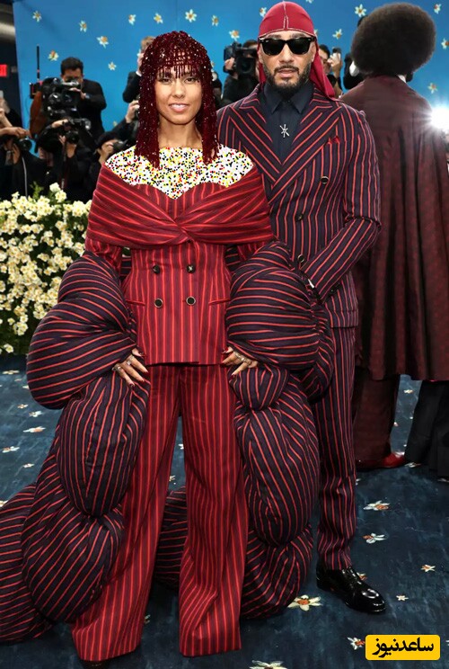 آلیشیا کیز با کتوشلواری قرمز و خطدار از برند «مونکلر» و سوییز بیتز با لباسهایی هماهنگ با همسرش، حضوری درخشان روی فرش قرمز داشتند. استایل آنها ترکیبی از قدرت و ظرافت را به نمایش گذاشت.