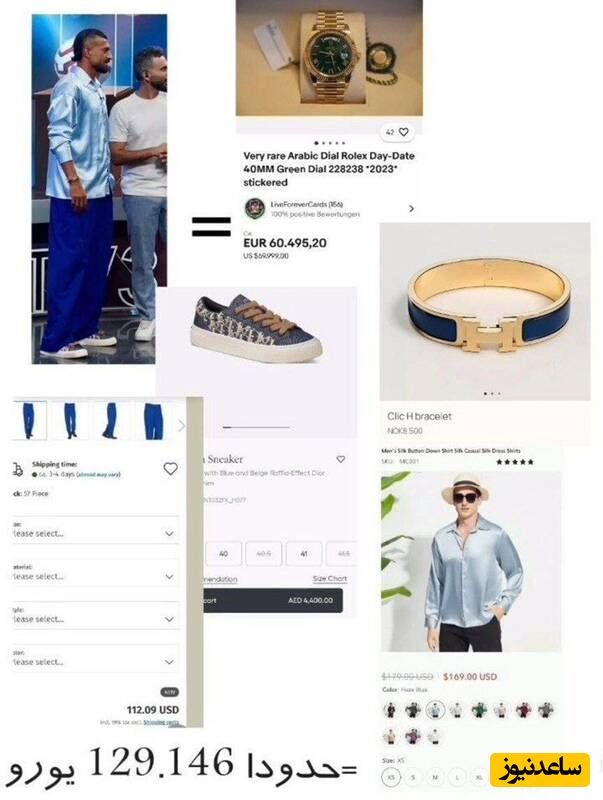 به گزارش سرویس مدوزیبایی ساعدنیوز، این فوتبالیست که به استایل های خاصش معروفه با پیراهنی ساتن 1700 یورویی به رنگ ترندی آبی آسمانی، شلوار ابی کاربنی، ساعتی خاص از رولکس به قیمت حدودا 6 میلیارد، اسنیکرهای دیور 118 میلیونی و دستبند H click برند هرمس با قیمت 70 میلیون خیلی حاشیه ساز شد. البته خیلی هام این استایل رو مسخره کردن چون معتقد بودن پیراهن ساتن زنونهست. البته که پیراهن ساتن رو قبلا تن خیلی از سلبریتی های مرد خارجی دیدیم اما هنوز بین اقایون ایرانی طرفداران زیادی نداره.