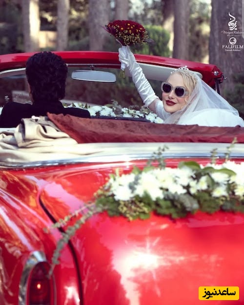 آرام جعفری دو دسته گل متفاوت داشت: یکی شامل گلهای ارکیدهی سفید و دیگری شامل گلهای قرمز که هر دو جلوهای خاص و متفاوت به تصاویر مراسم میدادند. تعدادی از عکسهای خاص مراسم، او را در کنار ماشین قرمز قدیمی نشان میداد و عینک آفتابی فریم سفید به عنوان یک اکسسوری مدرن، تضادی جذاب با لباس وینتج و دکور عکاسی ایجاد کرده بود.