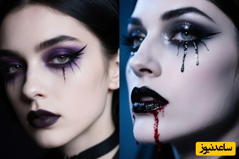 خط چشم خود را با کمی آب رقیق کنید و به پایین پلک بچکانید تا شبیه به اشک سیاه شود. حتی میتوانید با استفاده از سایه مشکی و قلموی ظریف، خطوطی شبیه به اشک خشک شده طراحی کنید. این میکاپ هالووین ساده، خاص و زیباست.